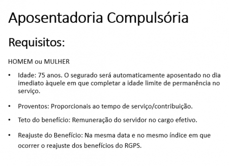 Aposentadoria compulsória: (art. 21 da LC n.º 606/09)